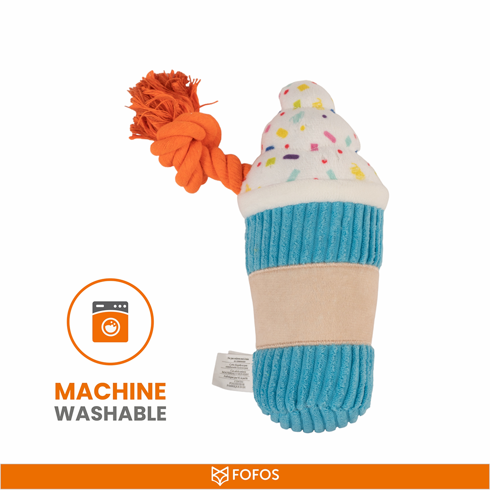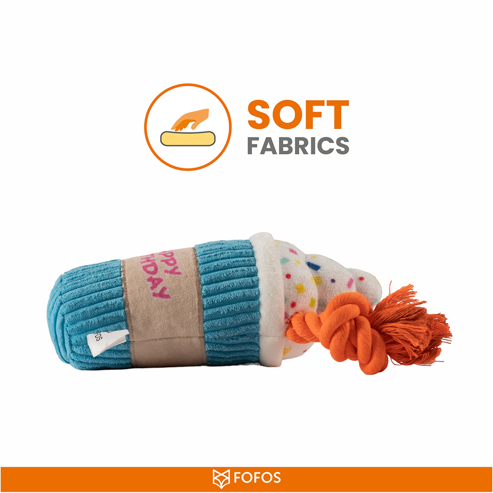 Welcome to the world of FOFOS, where we design top-notch toys for your beloved furry friends. Introducing FOFOS Birthday Drink Dog Toy, a unique blend of rope toys for dogs and plush toys for dogs, ensuring fun and excitement for your pet. The dog toys squeaky squeaker inside will keep your dog engaged and entertained for longer durations. This dog toy is machine washable and made from soft fabrics, making these squeaky toys for dog a great cuddle buddy for your pet. This soft toy for dogs is also a dog chew toy, which cleans your pet’s teeth while they play, ensuring their dental health is taken care of.