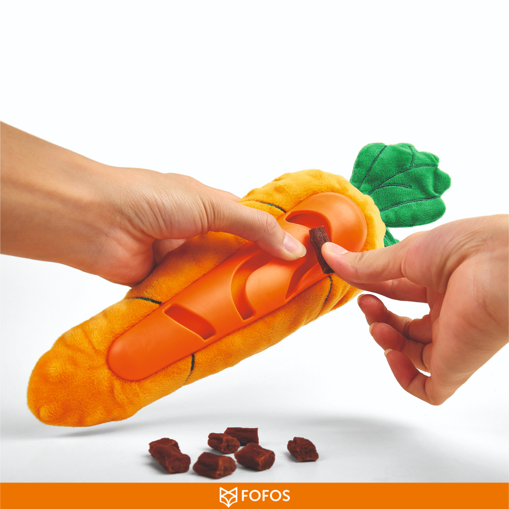 - Engaging & Interactive Toy: The Barkbutler x Fofos Carrot treat toy offers a fun, stimulating puzzle game for your dog, featuring a combination of plush fabric and soft, non-toxic TPR to encourage play, exercise, and mental stimulation.