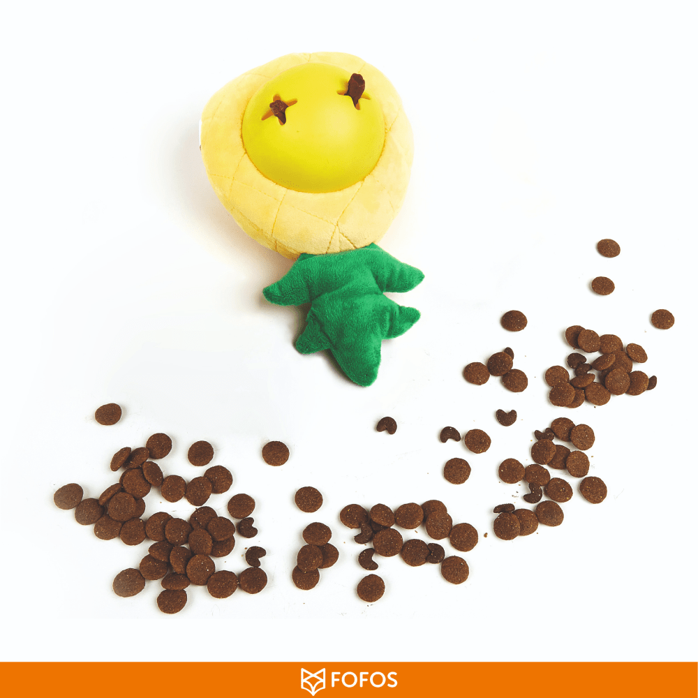 - Engaging & Interactive Toy: The Barkbutler x Fofos Pineapple treat toy offers a fun, stimulating puzzle game for your dog, featuring a combination of plush fabric and soft, non-toxic TPR to encourage play, exercise, and mental stimulation