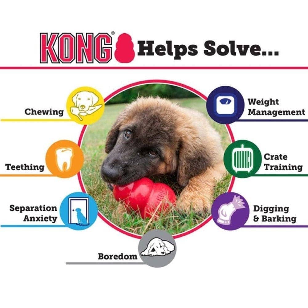 Stuffable Design: The hollow center can be filled with treats, peanut butter, or Kong’s special stuffing to keep your dog engaged and mentally stimulated for longer periods.