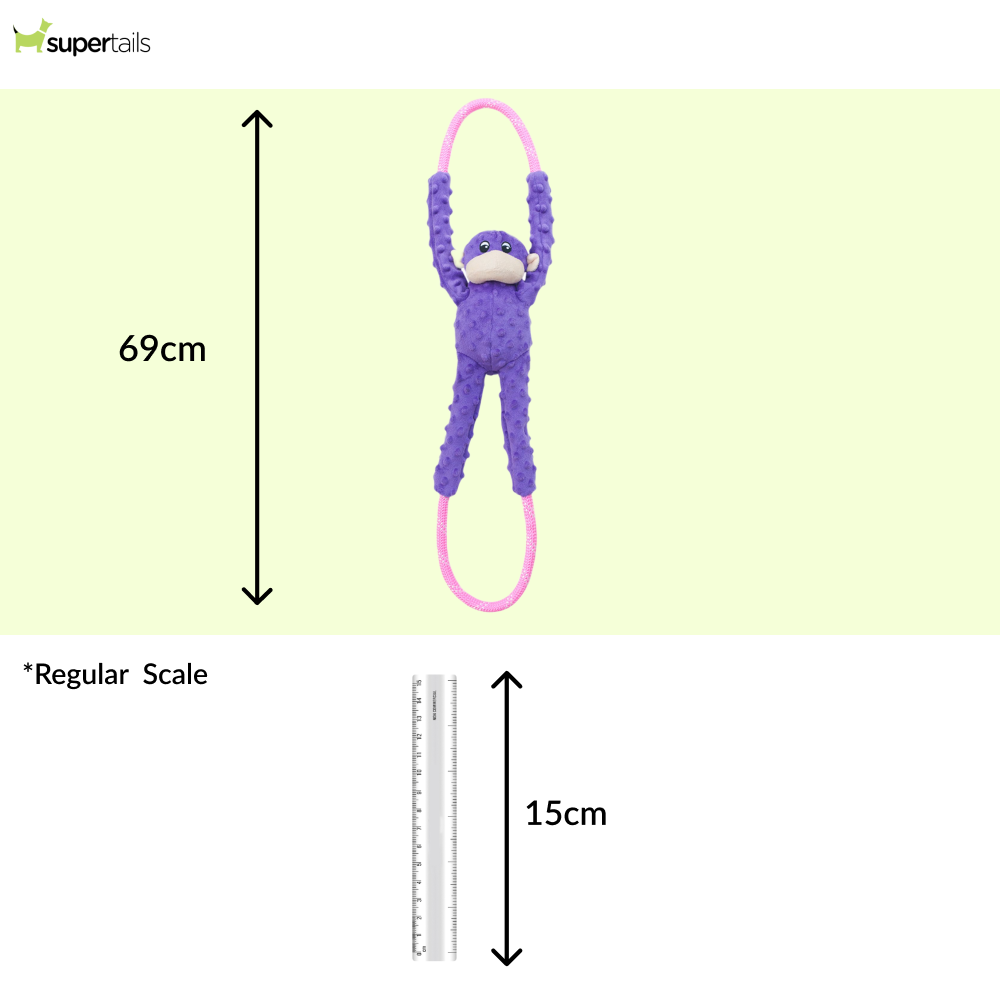 Tug of war just got a lot more playful with Monkey RopeTugz® from ZippyPaws! Featuring durable rope looped through its entire body, this extra-tough rope toy can withstand hours of heroic tug of war play with your pup.