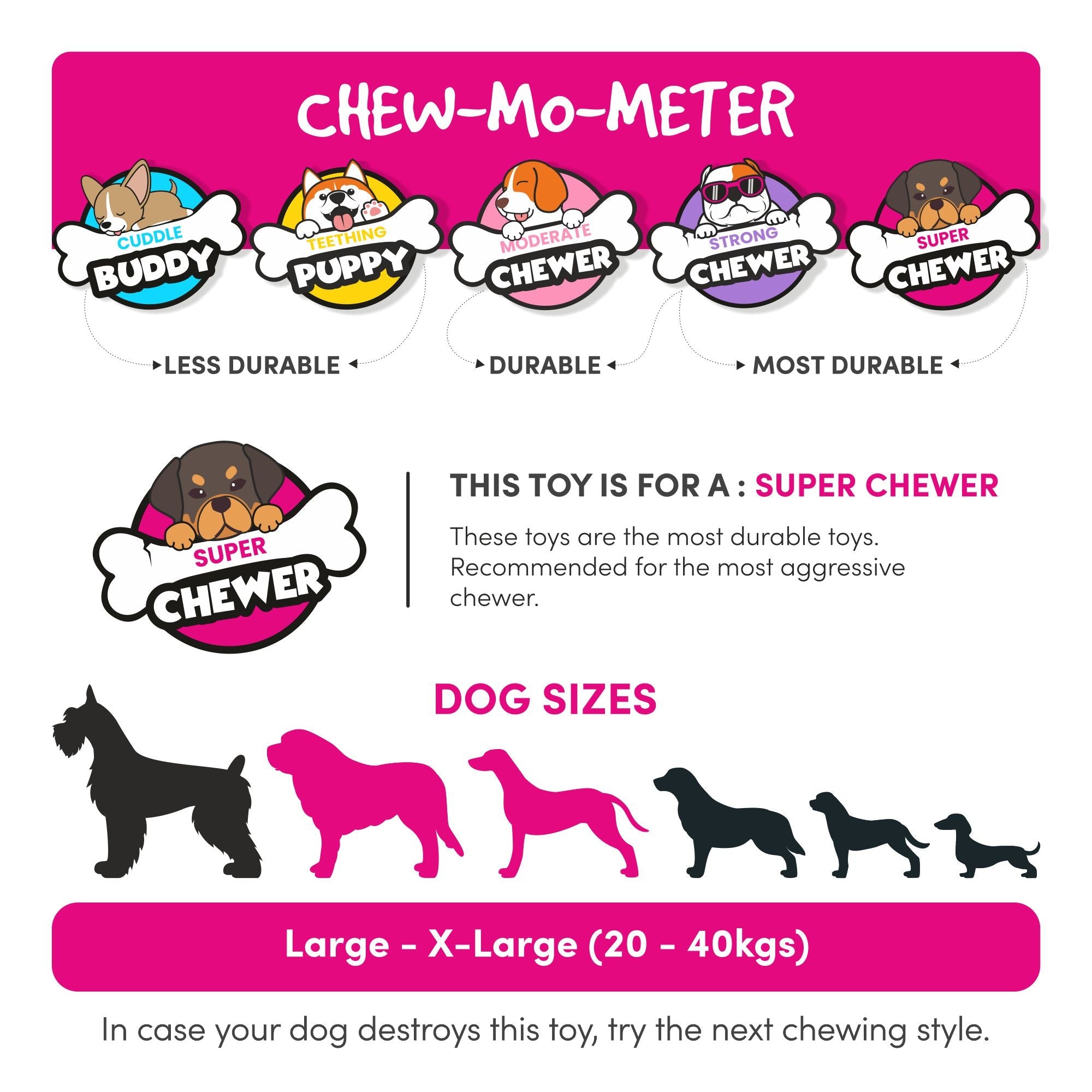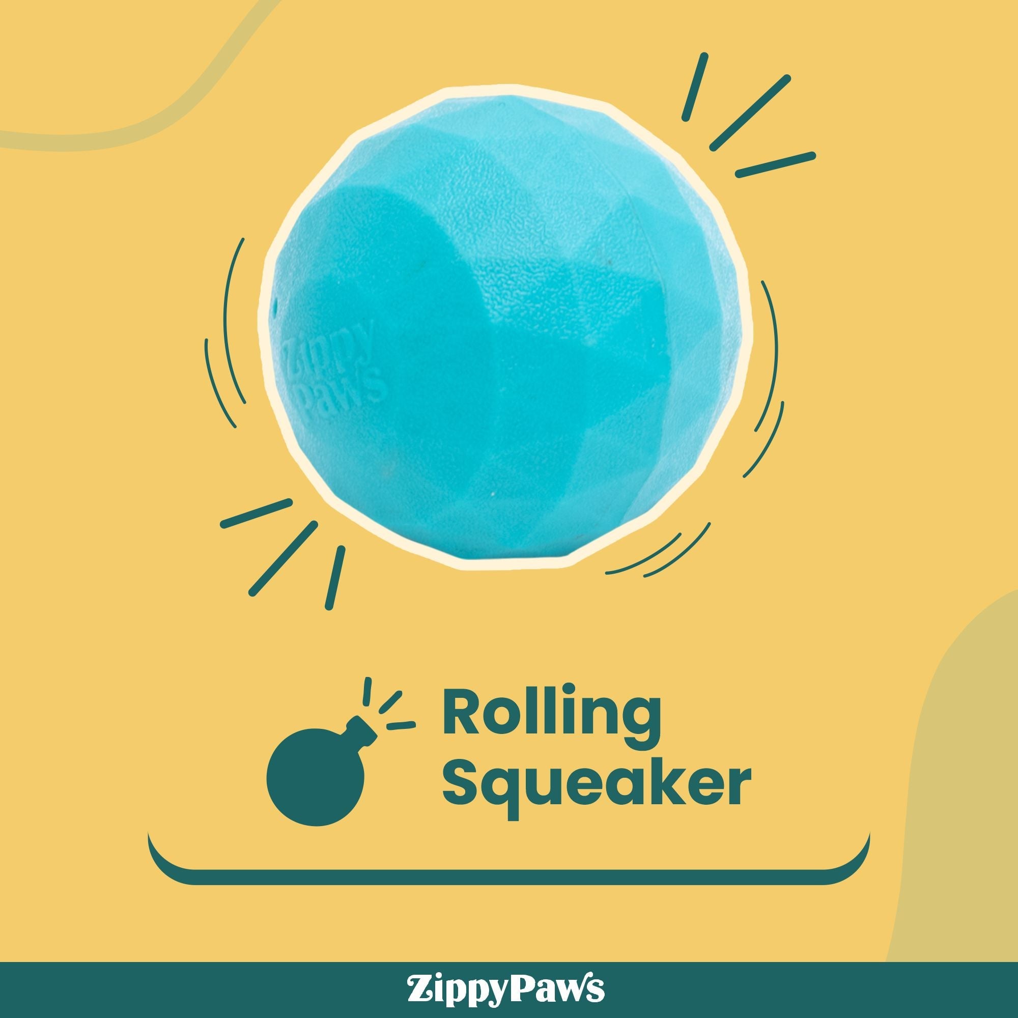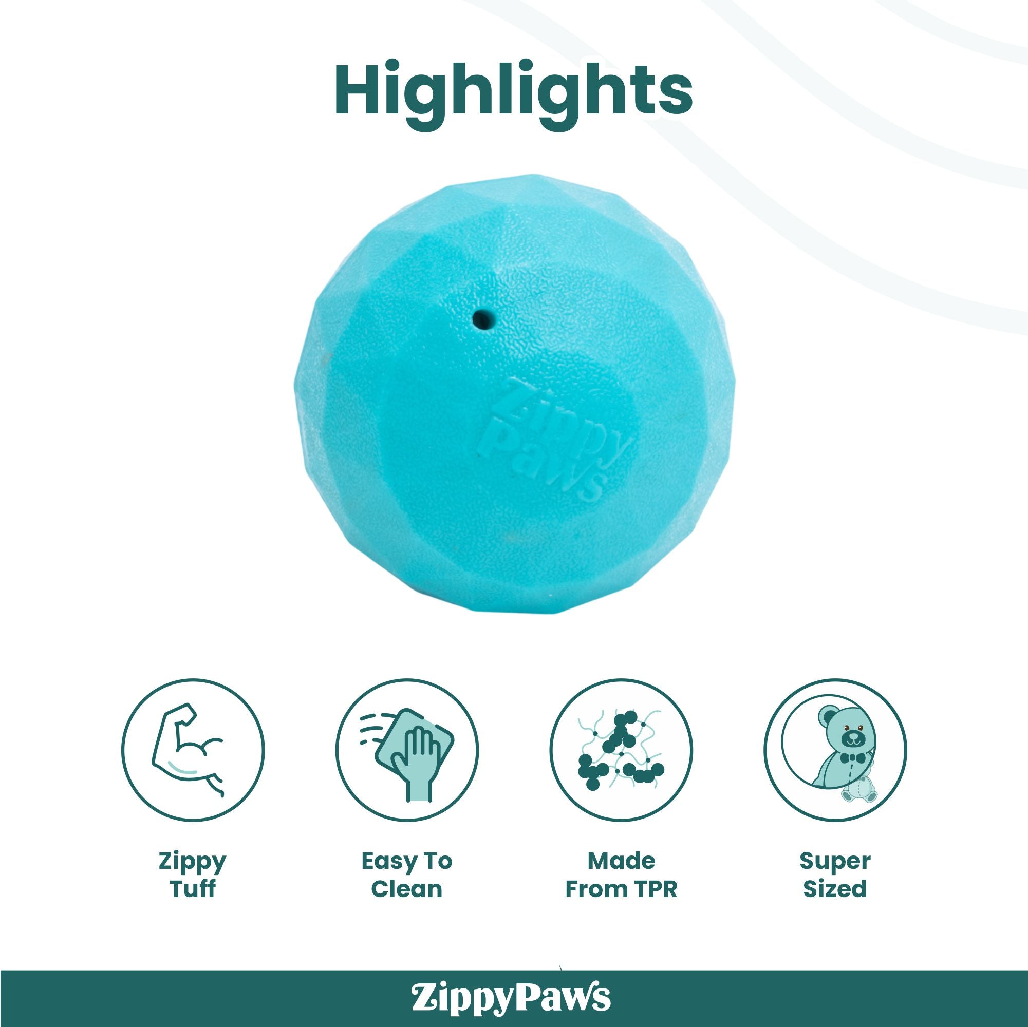 The Waggle Ball Jumbo features the same unique faceted design that makes its roll unpredictable and features an improved noisemaker that makes more noise than before. Made with durable ZippyTuff TPR material, this toy is built for hours of fetching fun!