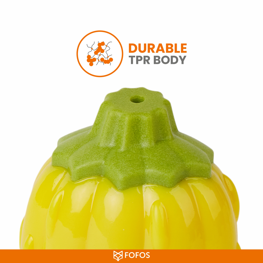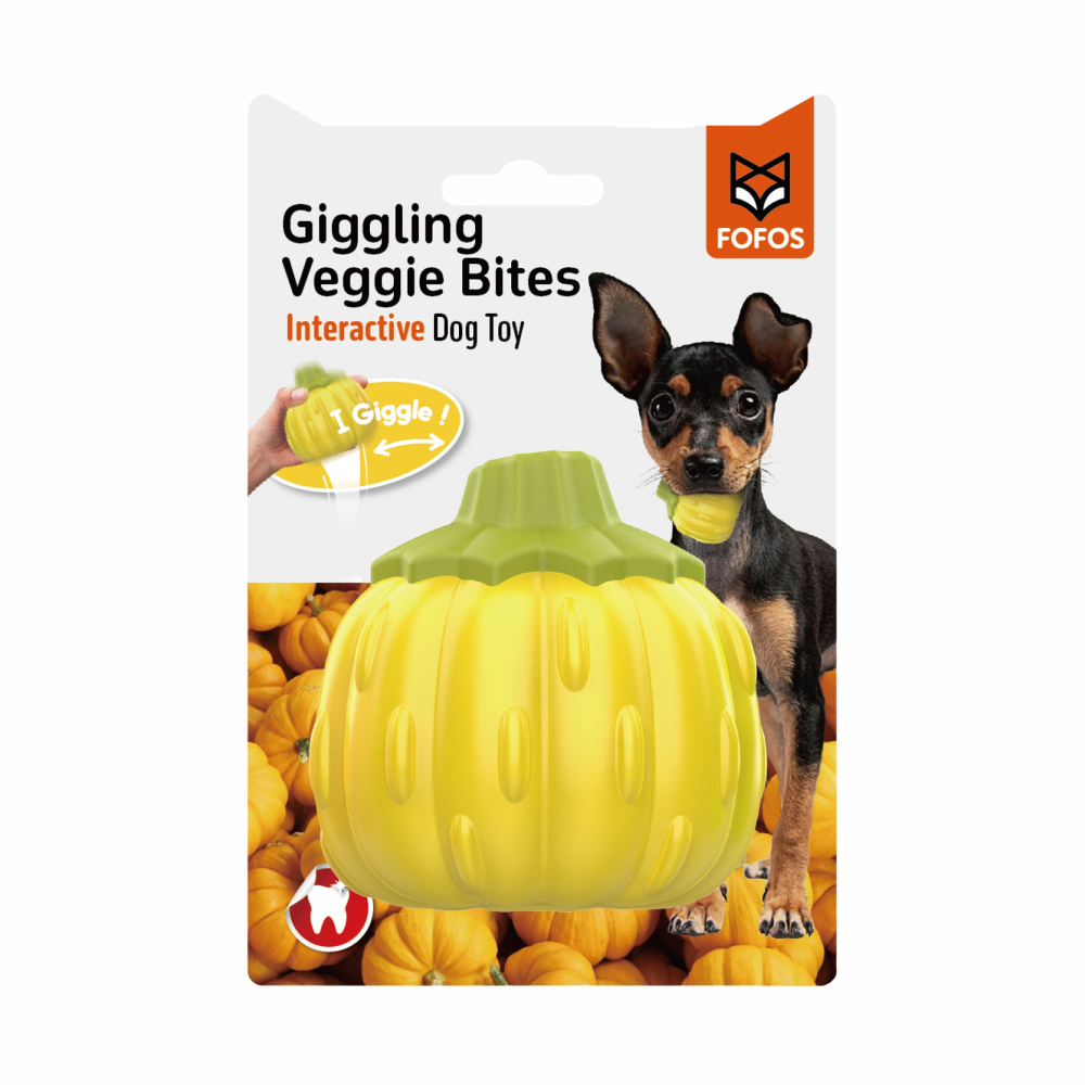 Introducing the BarkButler x FOFOS Giggling Veggi Bites Dog Toy – Pumpkin, the freshest interactive toy for dogs. This chew toy is the perfect teether for all dogs to play with and chew, keeping them engaged and entertained.
