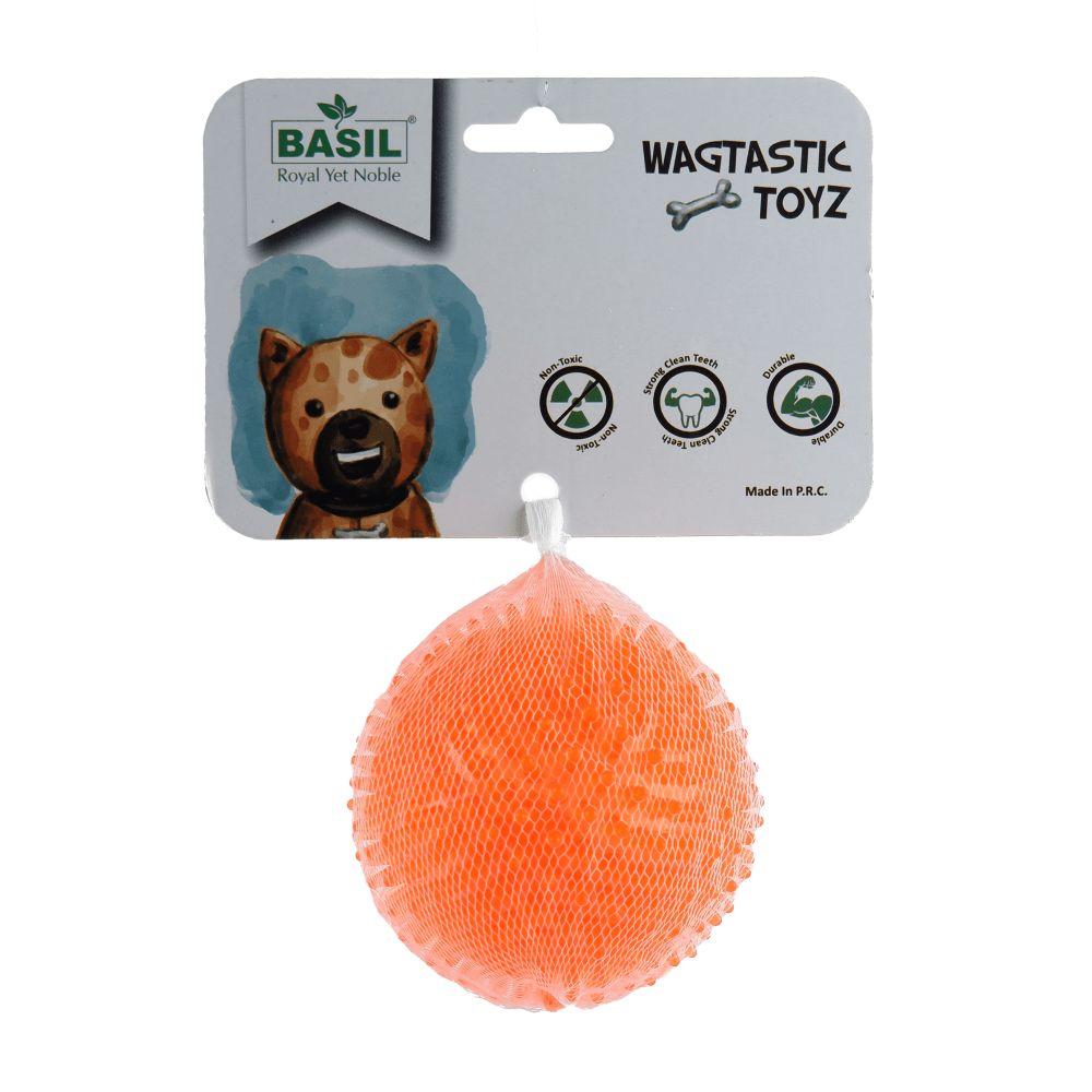 Basil Squeaky Rubber Ball Toy for Dogs (Orange)