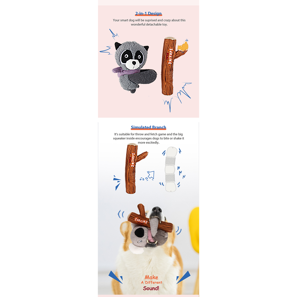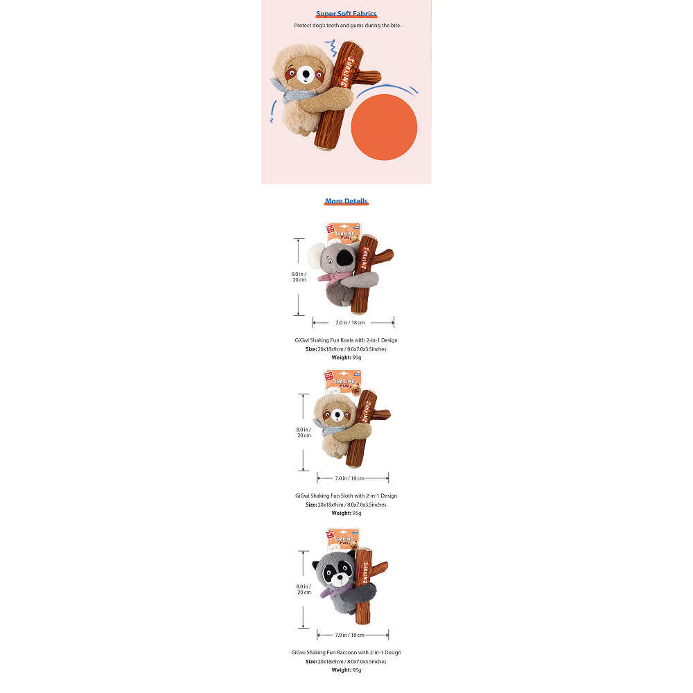 • 2-in-1 Detachable Toy suitable for snuggling and fetching.