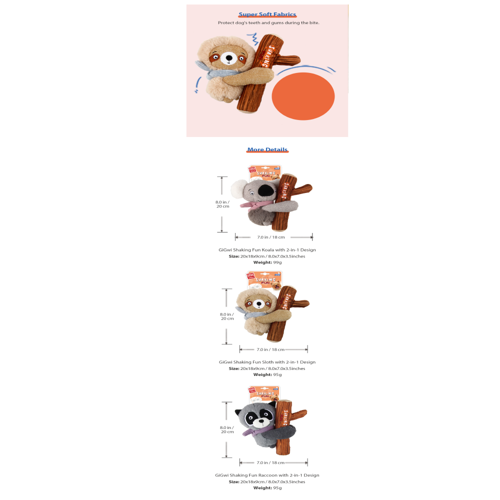 - 2-in-1 Detachable Toy suitable for snuggling and fetching.