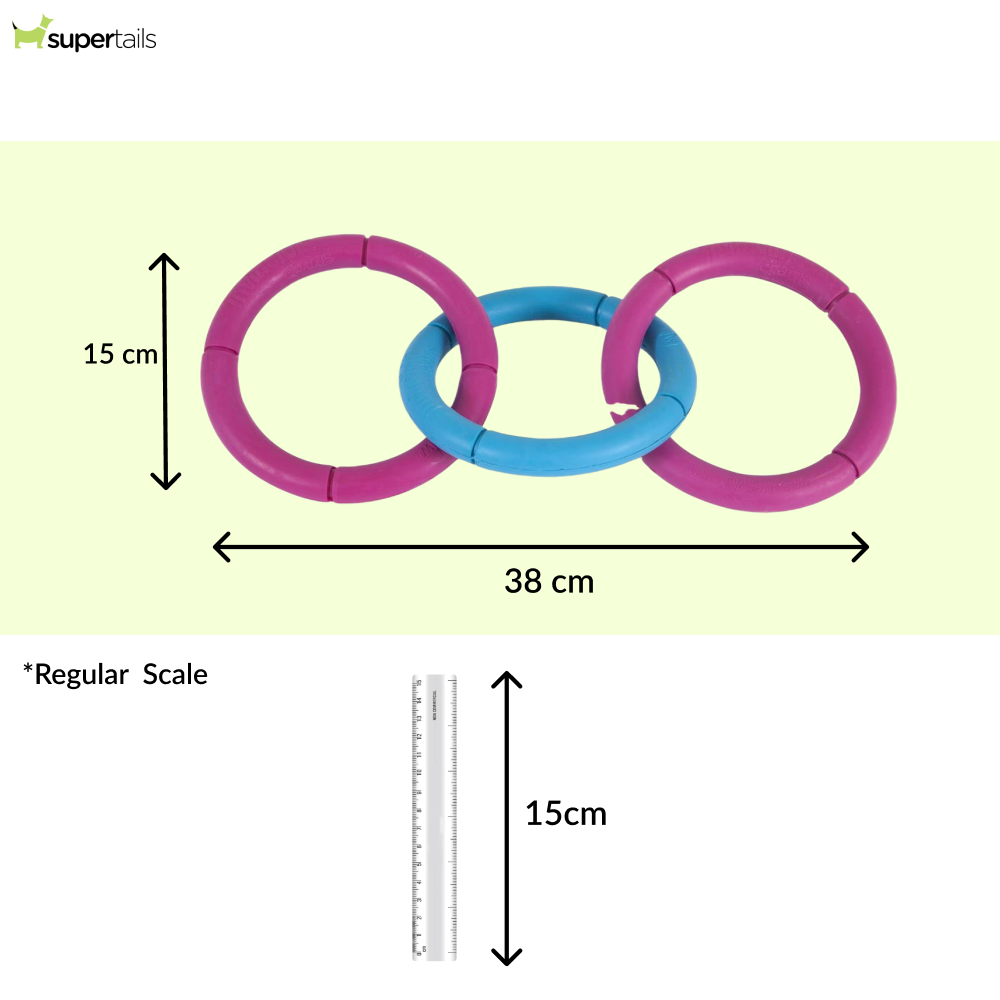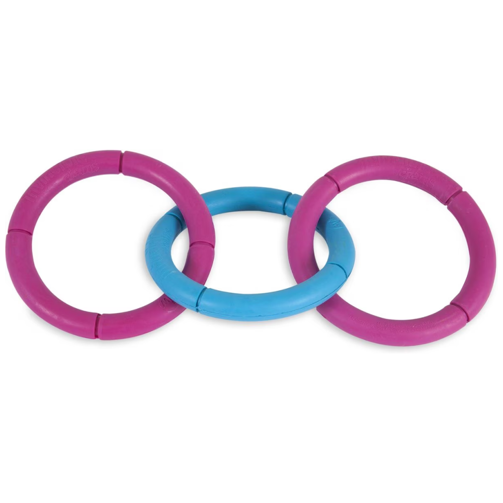 The JW Invincible Chains – Triple toy is great for chewing and long games of tug-of-war. Because the three rings are actually moulded together during the manufacturing process, there are no seams or glue on this toy. This is to make it as tough and durable as possible so your dog can enjoy it longer.