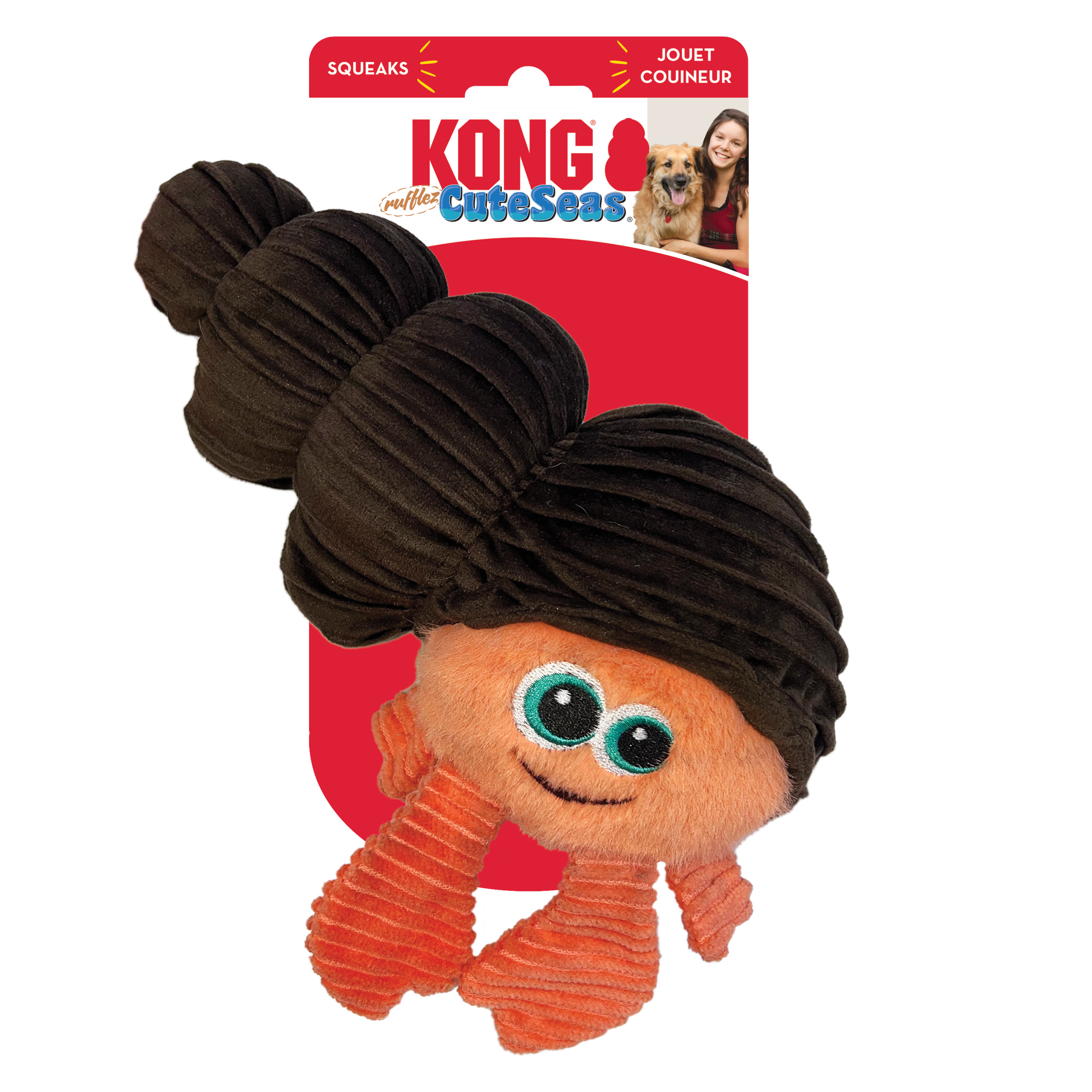 KONG CuteSeas Rufflez’s soft ridges lure dogs into oceans of adventure for tons of healthy play. These adorable aquatic friends are super-squeaky for waves of instinct-sparking sound that keep pups playing. Flat legs, claws and fins invite dogs of all sizes to dive into fun.