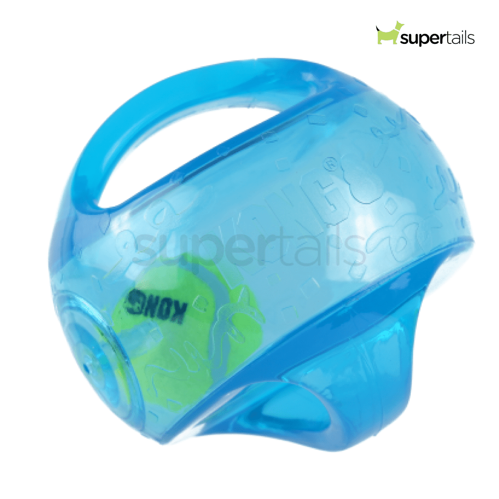 Designed for an active play session, the KONG Jumbler is durable and fun. The tennis ball encased within and the squeak entice play. The handles make it easy to pick up and to shake!