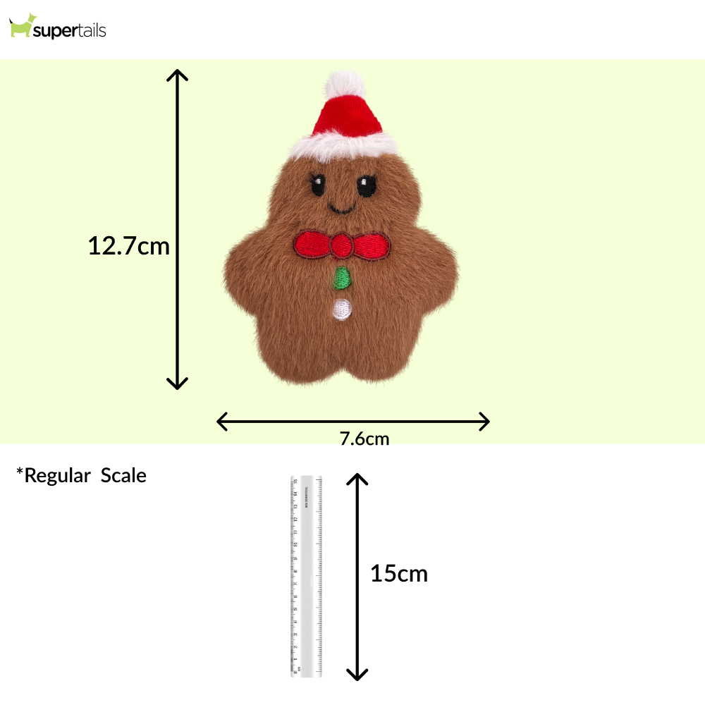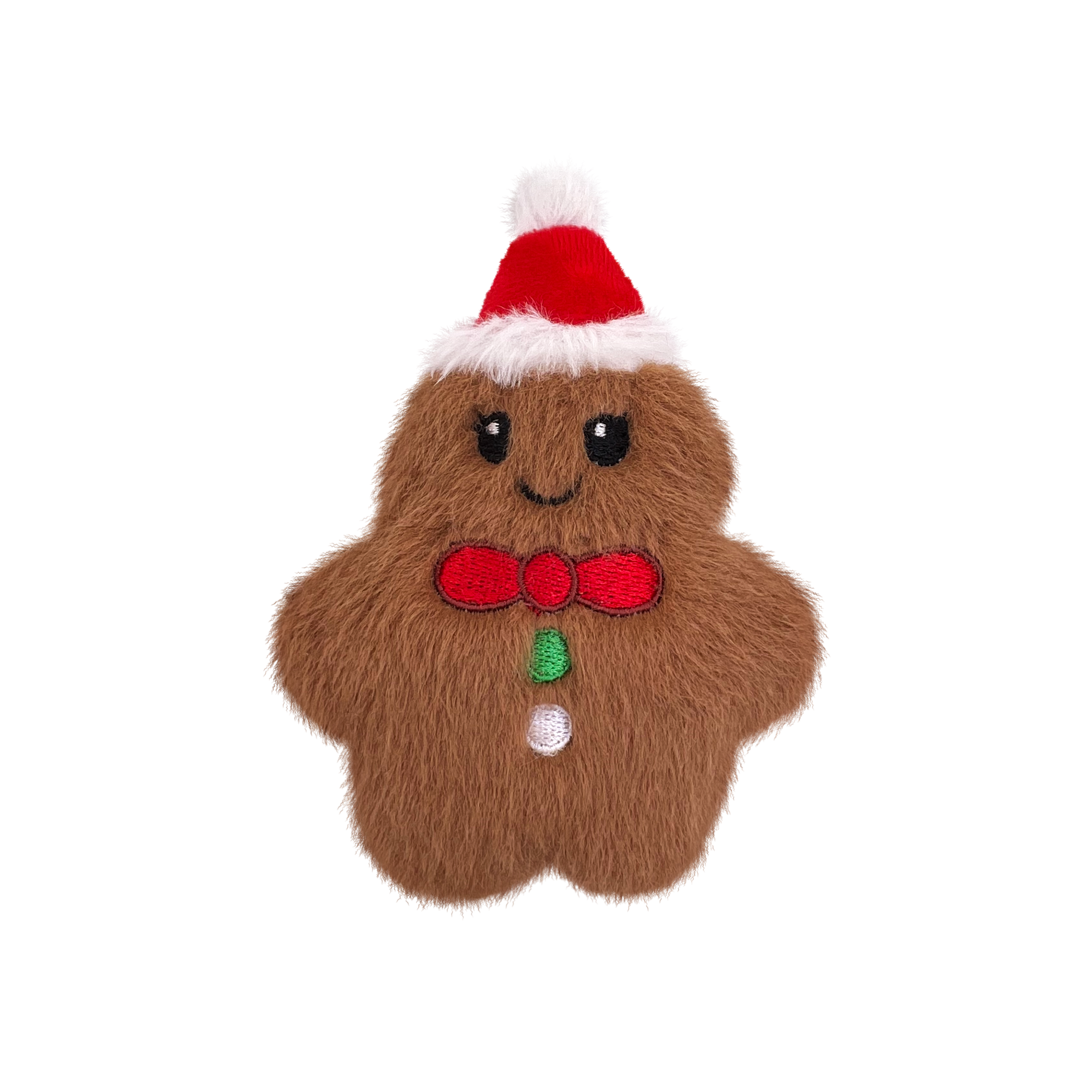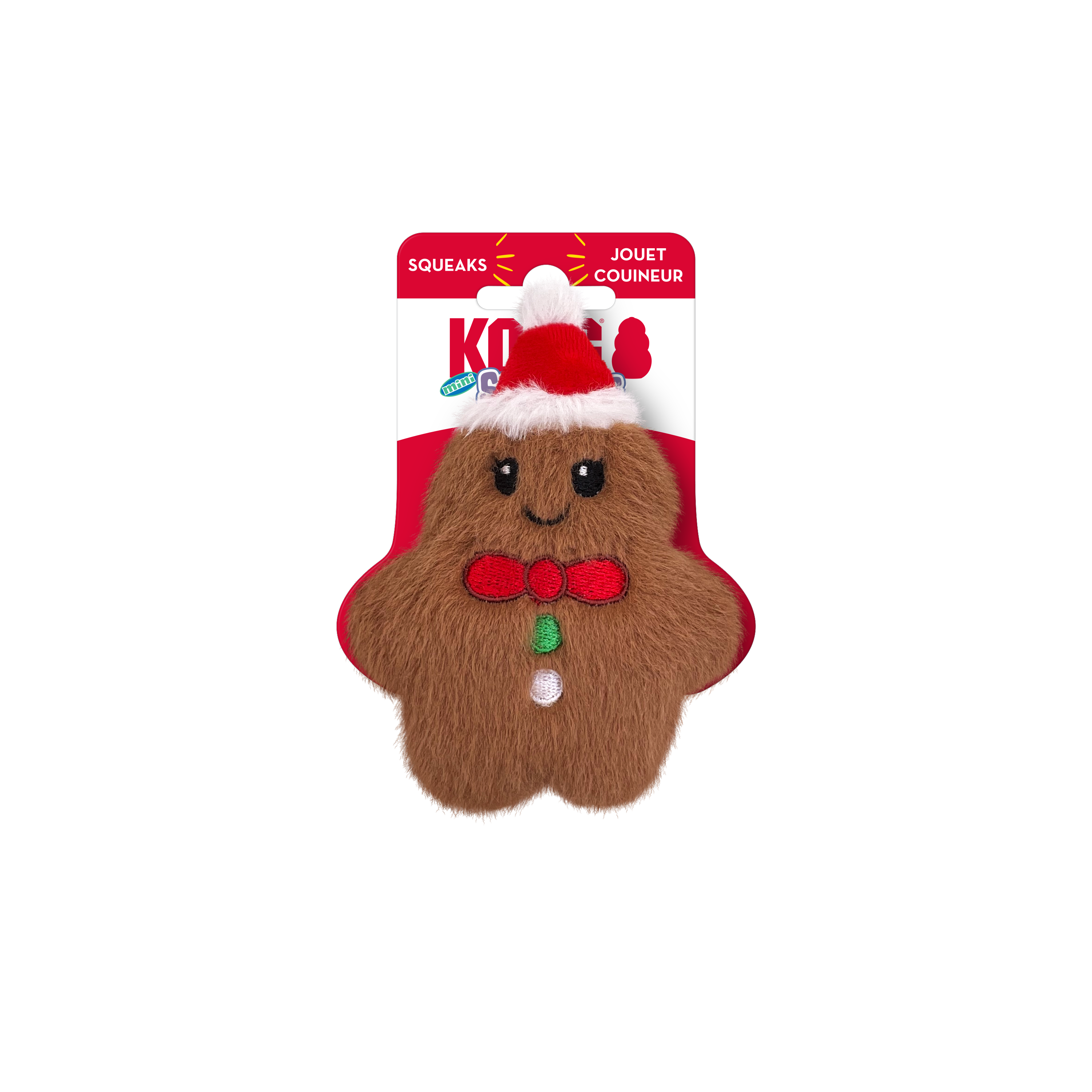 KONG Snuzzles Mini Gingerbread is perfect for little dogs who love big noises! This tiny & plump toy cookie is perfect for squeaking, carrying, and snuggling during the holidays. The full-body squeaker creates a dense mouthfeel that entices chewing, gumming, and squishing. The flat shape and velvety plush exterior makes this mini character easy to grab & perfect for indoor play.