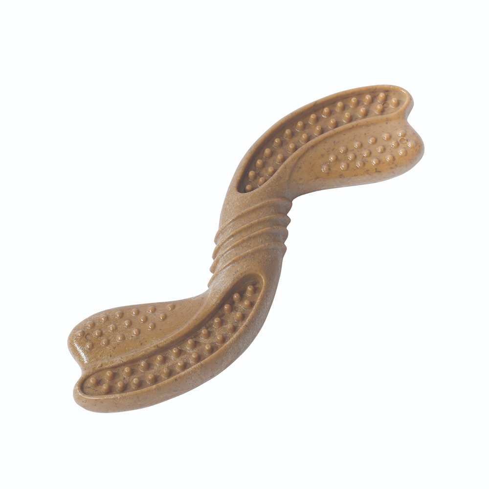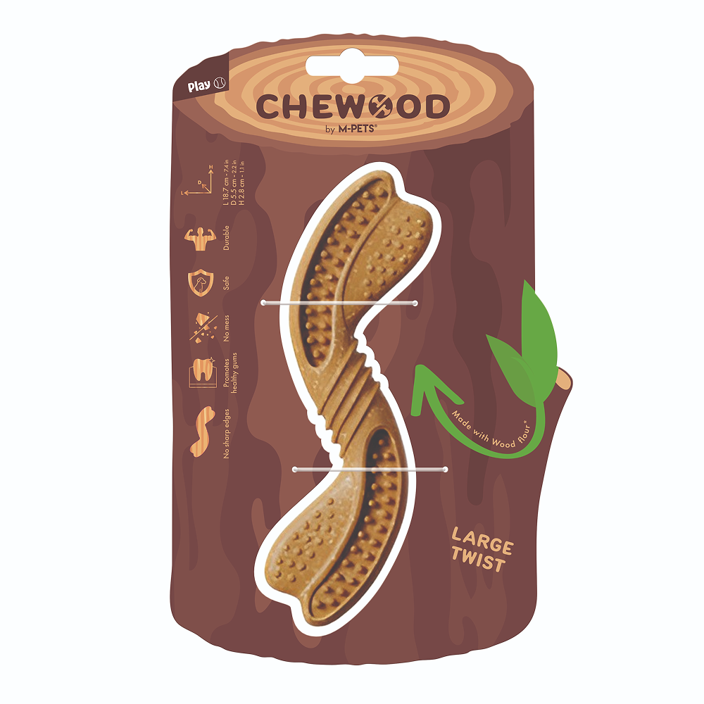 • The CHEWOOD toy is crafted from durable nylon and natural pine wood flour