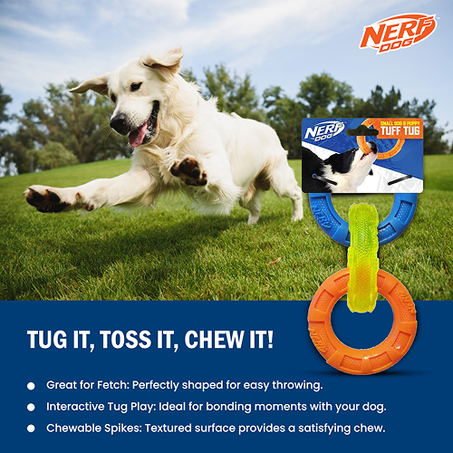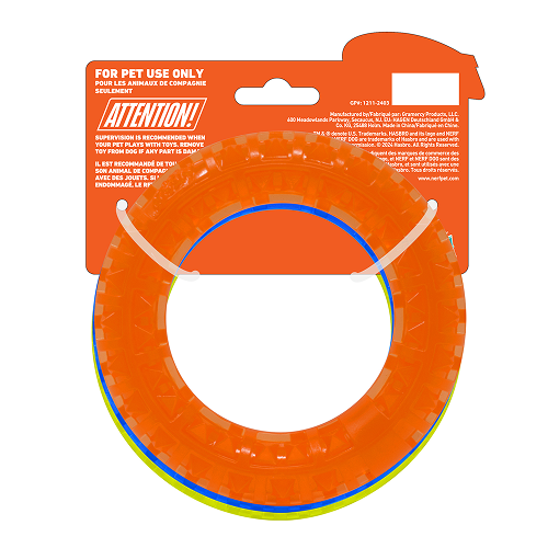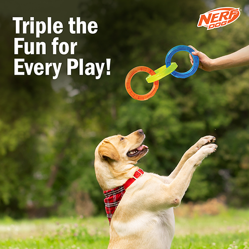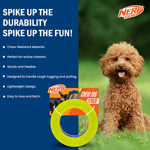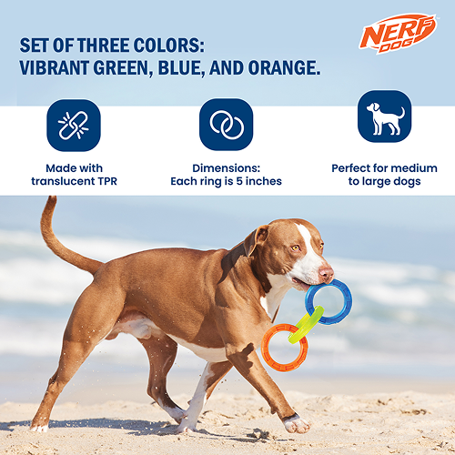 A set of three translucent, spiked rings designed for tough chewers and interactive play.