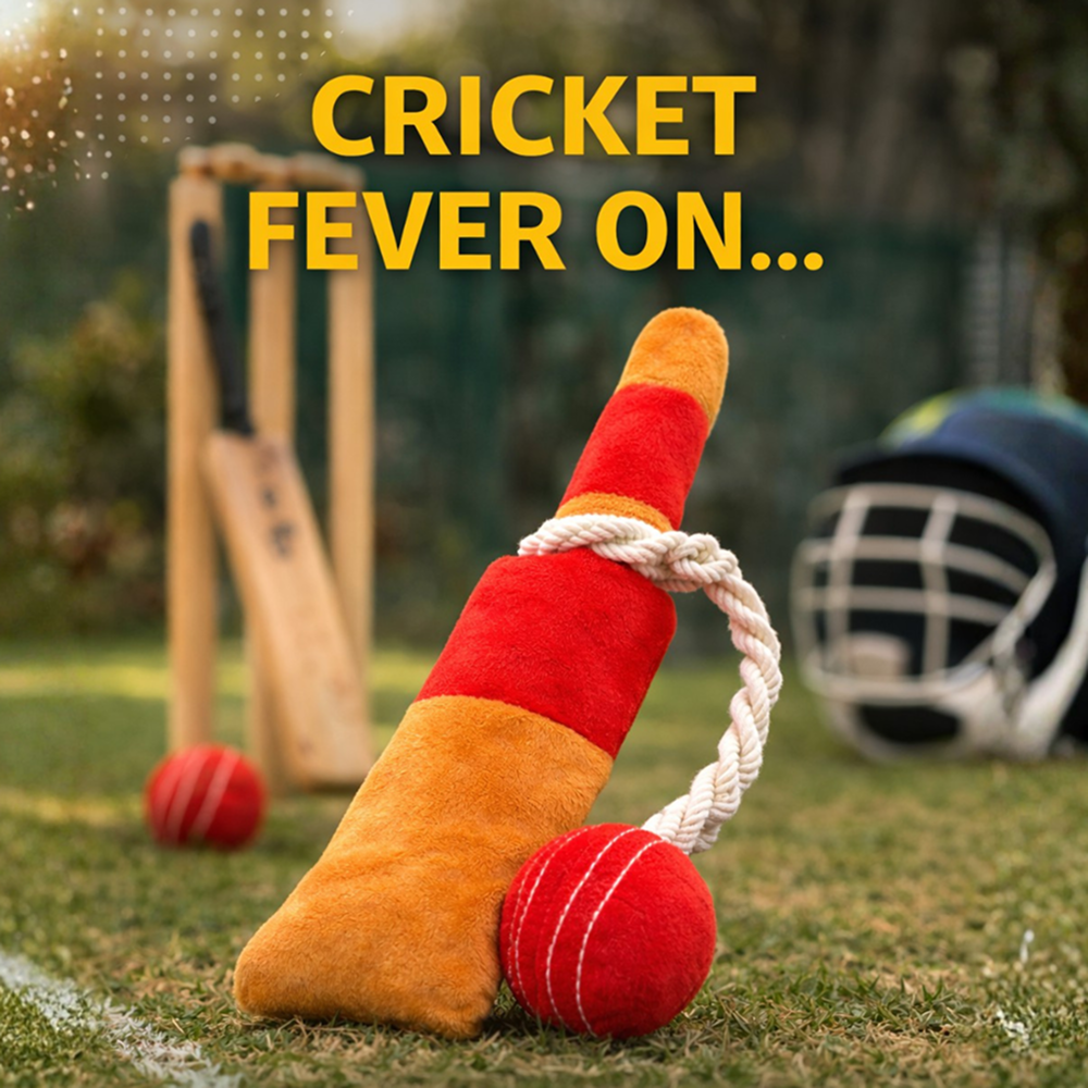 Bring the cricket fever to playtime with the Pawgy Pets Cricket Bat Dog Toy! Designed for dogs who love to fetch, tug, and chew, this fun cricket-inspired toy combines a plush bat with a rope and ball for interactive play.