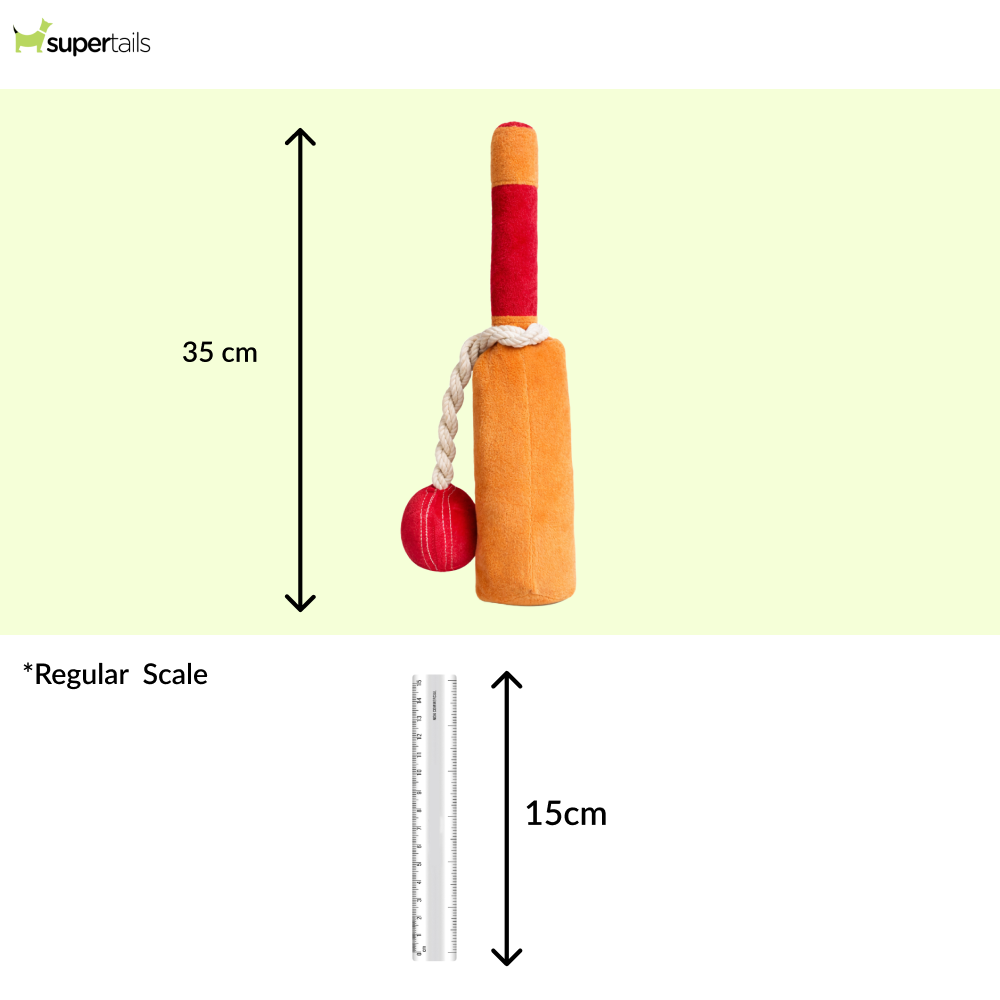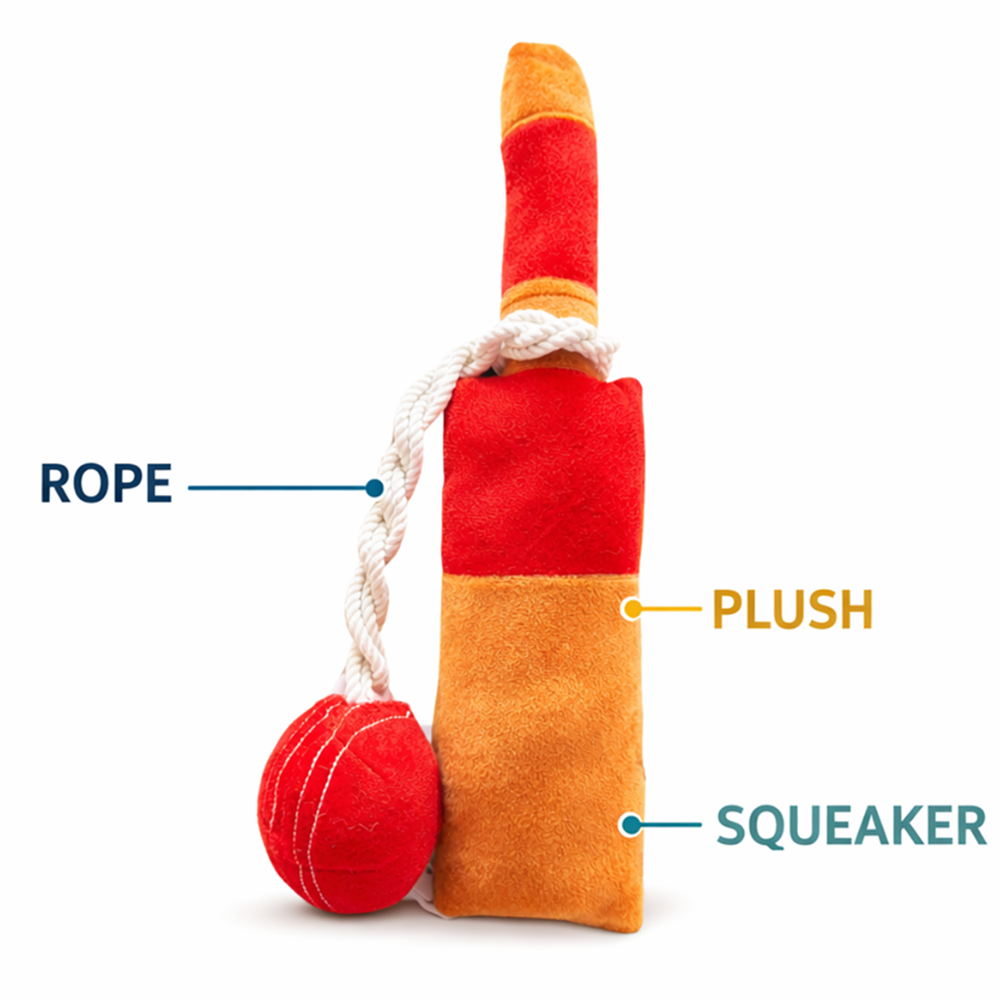 A fun cricket bat and ball design that brings a sporty twist to your dog’s toy collection.