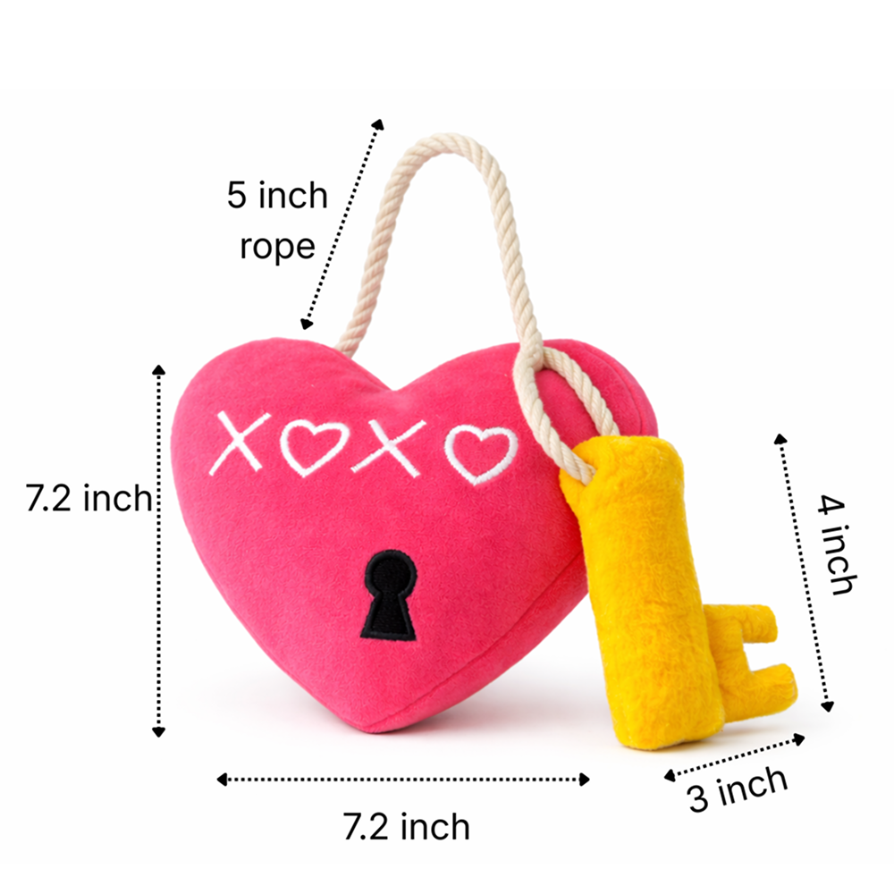 - Interactive 2-in-1 Design: The plush heart and key are securely linked by a durable cotton-blend rope, providing multiple grab points for fetching and tugging.
