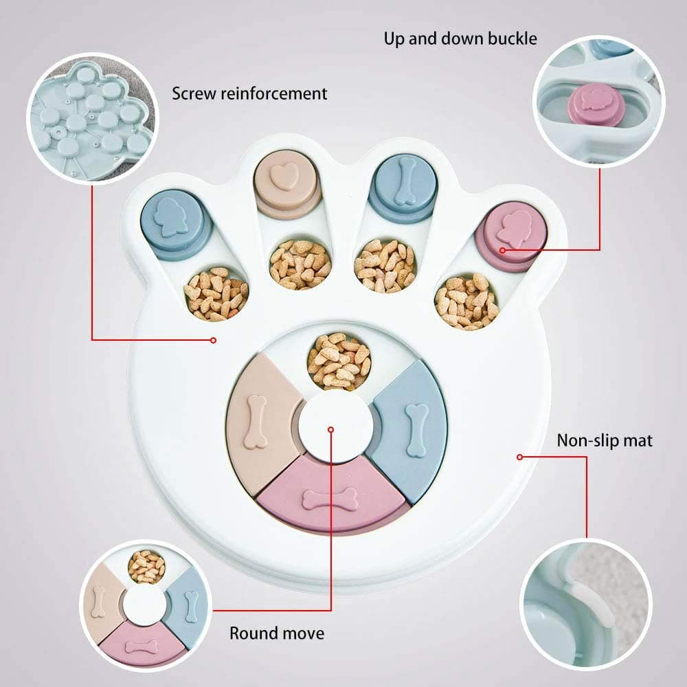 Puzzle eating toy is made of excellent PP material also a nice feeder, it is ECO, smooth surface is easy to clean. The toys is not detachable, screw reinforcement at the bottom can effectively prevent the food container from falling off, avoiding dog swallowing the plastic slider.