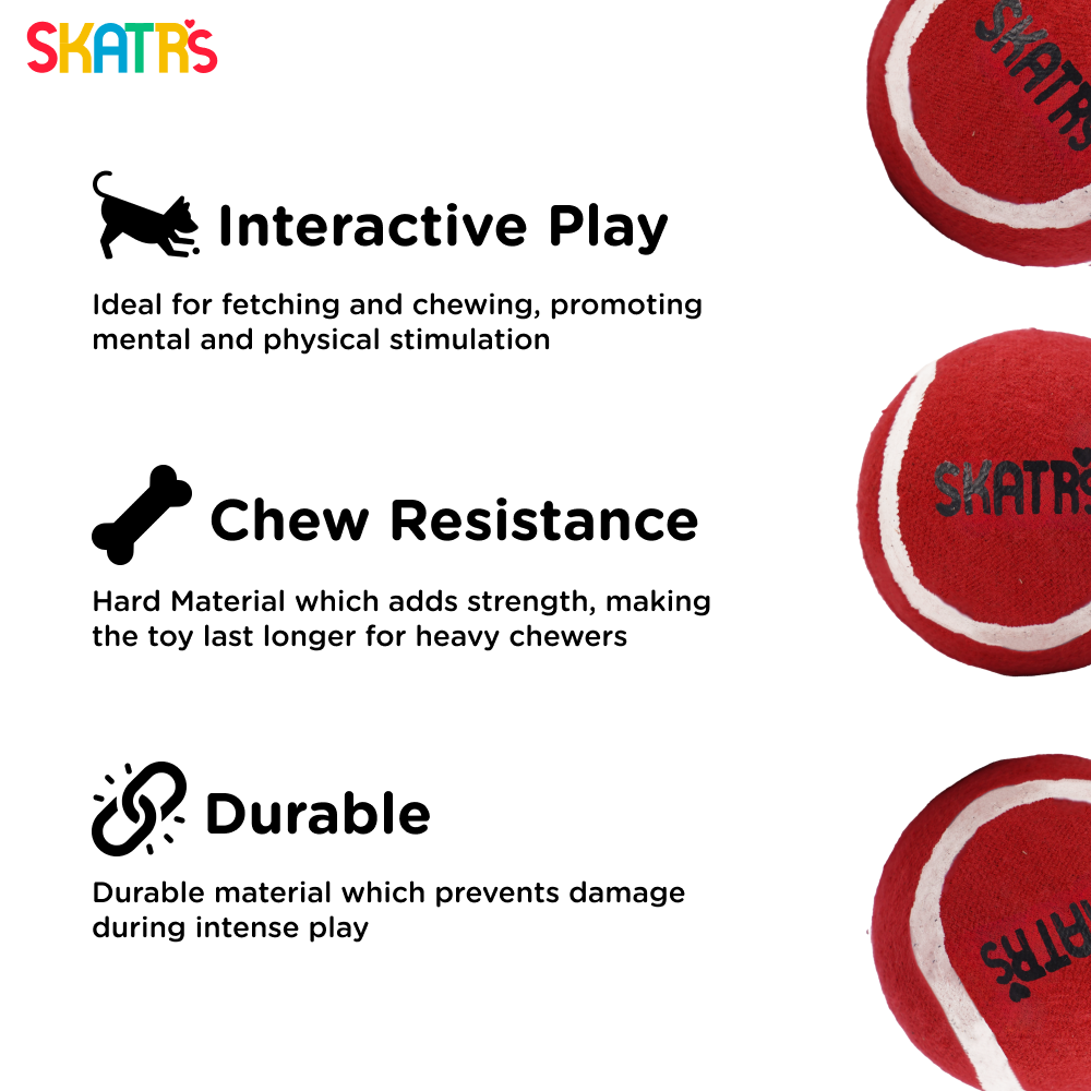 Our tennis dog balls are non-pressure balls with a hard liner that is easy to chew by sharp teeth and are designed primarily for training strikes. These dog balls has natural high-bounce rubber that encourages dogs to leap and jump. Ball toy is made of rubber, covered with tennis fabric, safe and reliable to use, with good elasticity and bite force, and can serve your pet for a long time. This squeaky toy for dogs helps to satisfy the dog’s instinctual needs and release extra energy. It Squeaks and attracts the dog’s attention. This also helps to encourage the natural hunt and play behaviour. Squeaky dog toys are ideal for keeping pets engaged for a longer time.