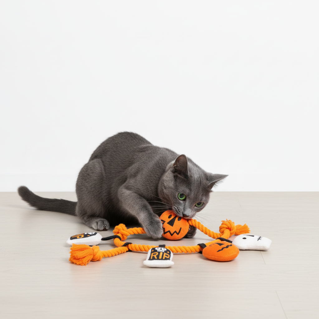 Make this Halloween a tail-wagging, squeaky-fun adventure with the Skatrs Trick-or-Tug Rope Toy! This festive rope toy features four spooky plush friends—a jack-o’-lantern, a tombstone, a mummy, and a ghost—perfectly attached to a durable rope for interactive play. Whether your pup loves tugging, chewing, or snuggling, this toy delivers hours of fun. Each plush has […]
