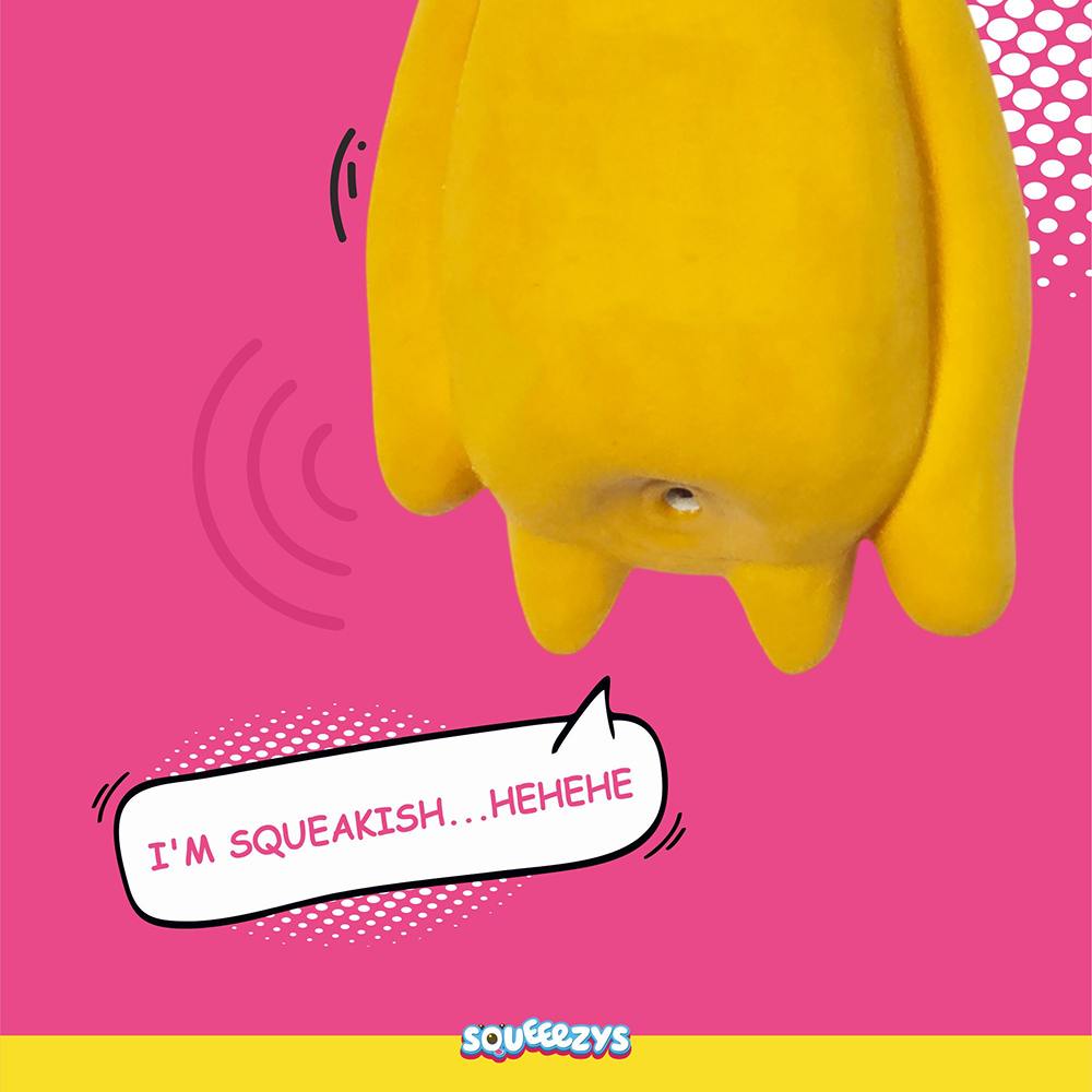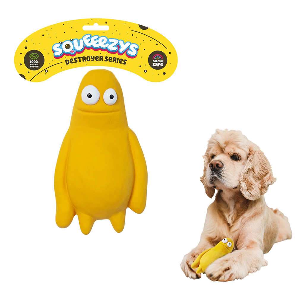 Squeeezys Latex Monster Squeaky Chew Toy for Dogs (Yellow)