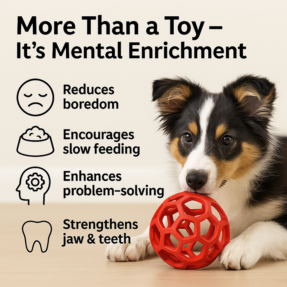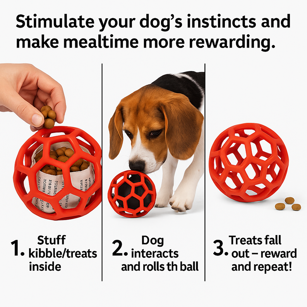 • Interactive Puzzle Design – Open grid structure allows you to stuff treats, kibble, or smaller toys inside, keeping your dog mentally stimulated and curious.