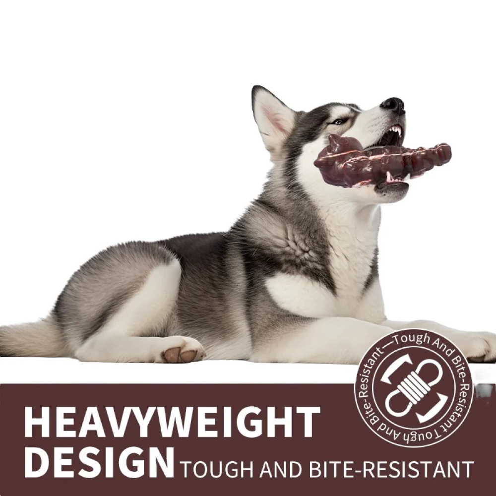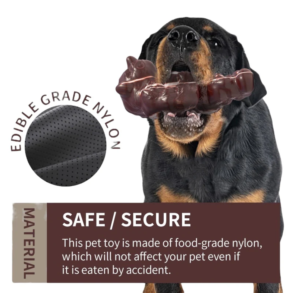 A strong chewable toy for dogs, that replicates the thrill of chewing table legs, chomping on TV remotes and biting off chunks of footwear. This dog toy is non-toxic, flexible, durable and washable by hand with cold water. All, with the bite-feel of things far more sinful.