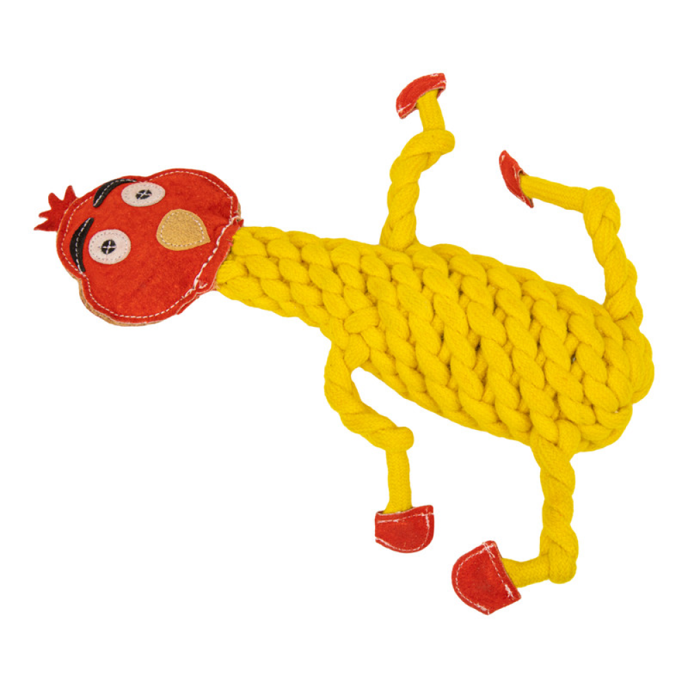 The high-quality toy is made of organic cotton. For a more sustainable environment, it is made from recycled bottles. The striking yellow color is to your pet’s delight.