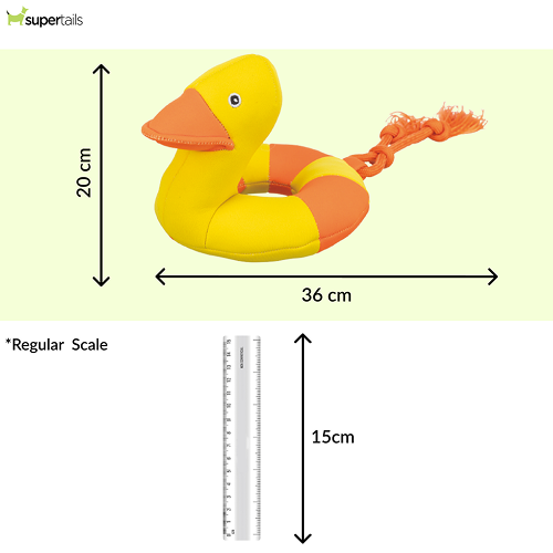 Ready for your next water adventure for pets? Our Aqua Toy Duck is the perfect dog toy for a shared trip to the ocean or a lake. It combines a floating tire with a duck head, all attached to a sturdy rope. In addition, the duck produces squeaking sounds that arouse the interest and curiosity of your furry friend.