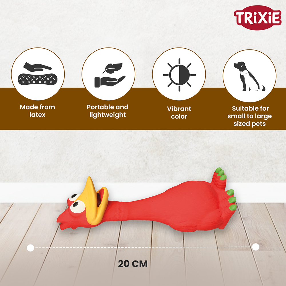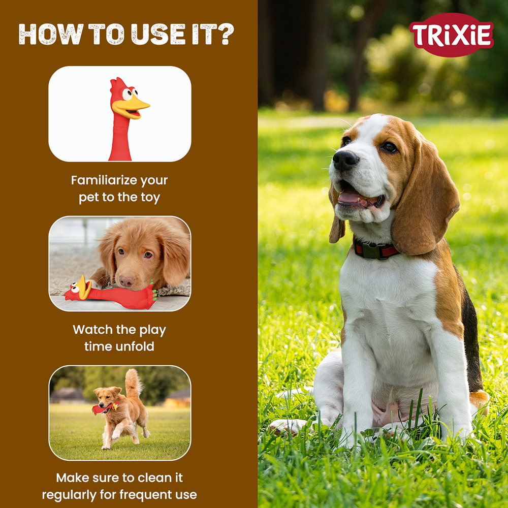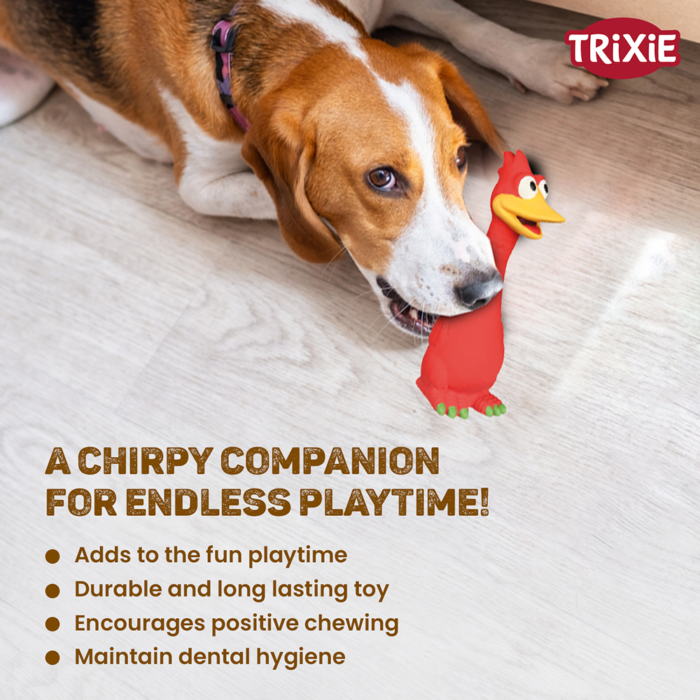 - A simple yet entertaining latex toy that dogs will love to nibble on.