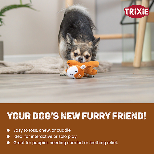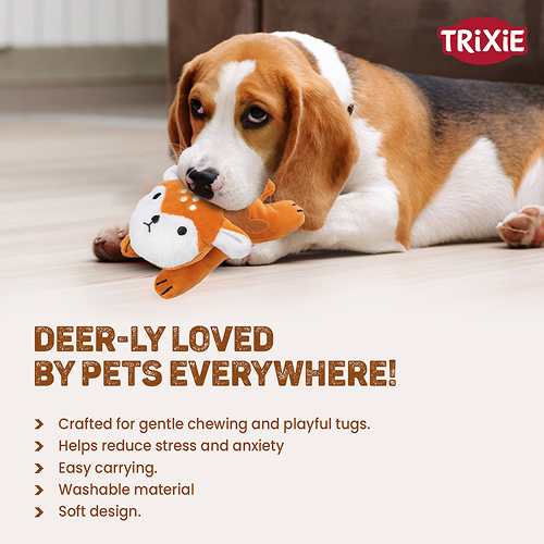 The Trixie Deer Plush Dog Toy is an adorable and cuddly companion for your furry friend. Made from soft and durable polyester, this soundless plush toy is perfect for gentle play and snuggling. Its deer design adds a playful touch, making it a favorite for dogs of all sizes. Lightweight and easy to carry, this toy is a delightful way to entertain and comfort your pet.