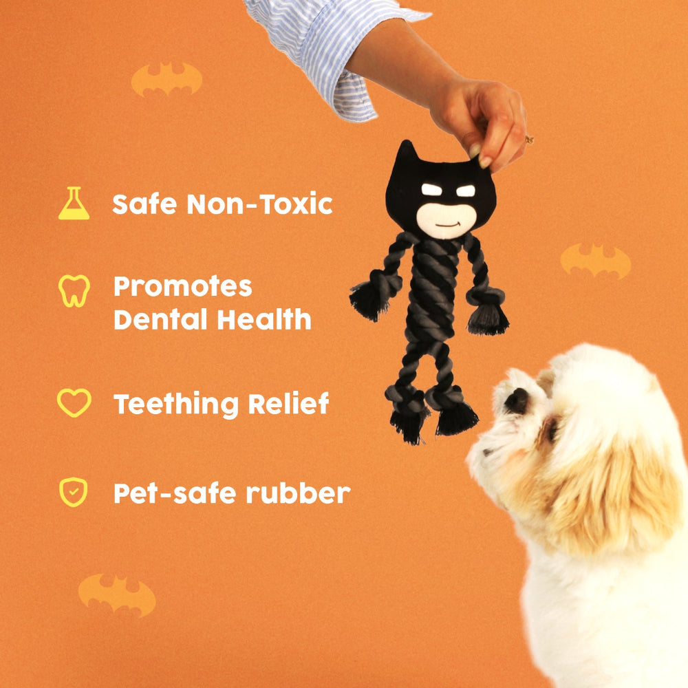 Warner Bros Batman Teething Rope Toy for Dogs and Cats (Black and Grey)