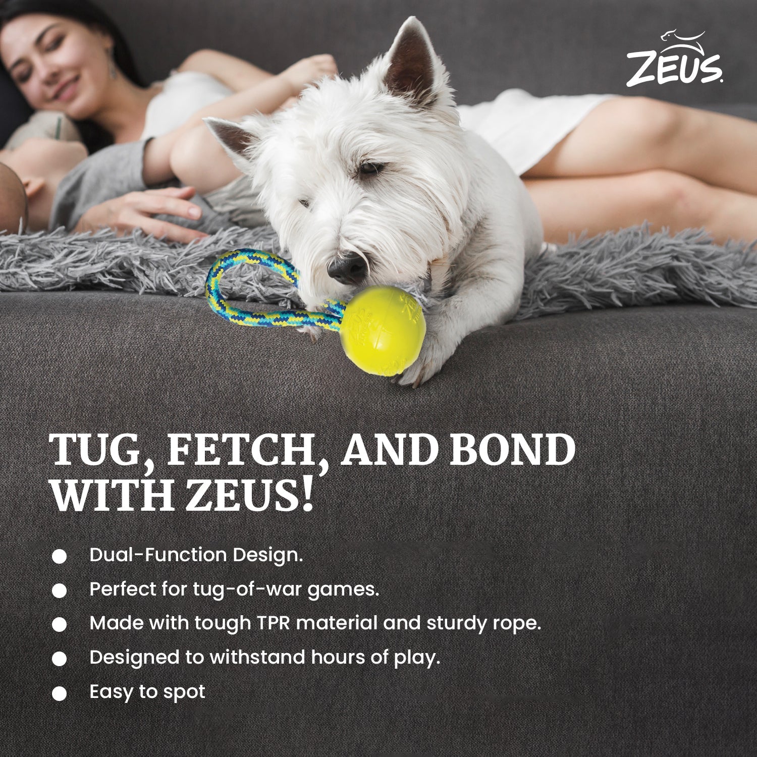 Be the first to review “Zeus Rope Ball Tug with Single Hand Loops Toy for Dogs (Yellow)”